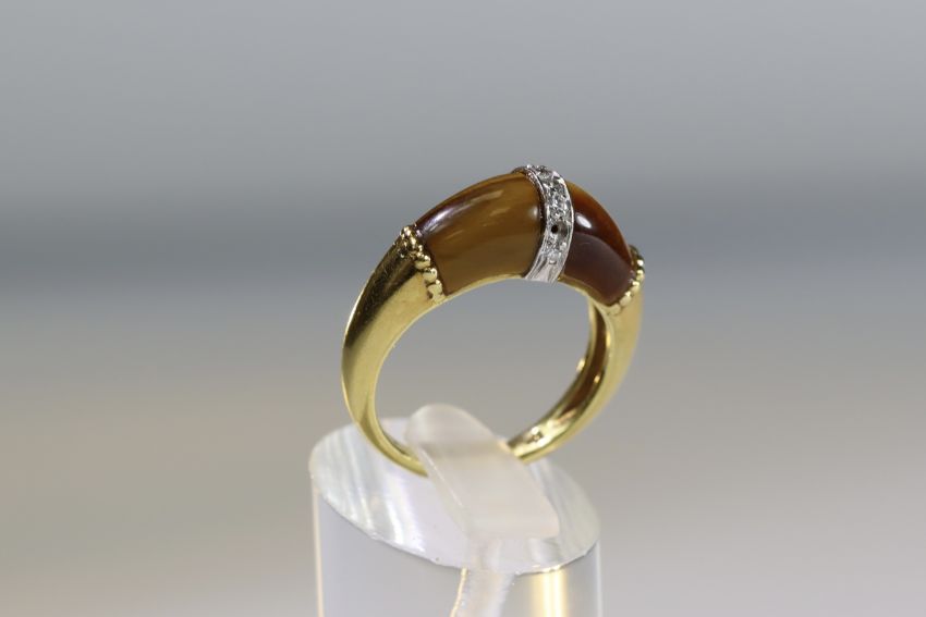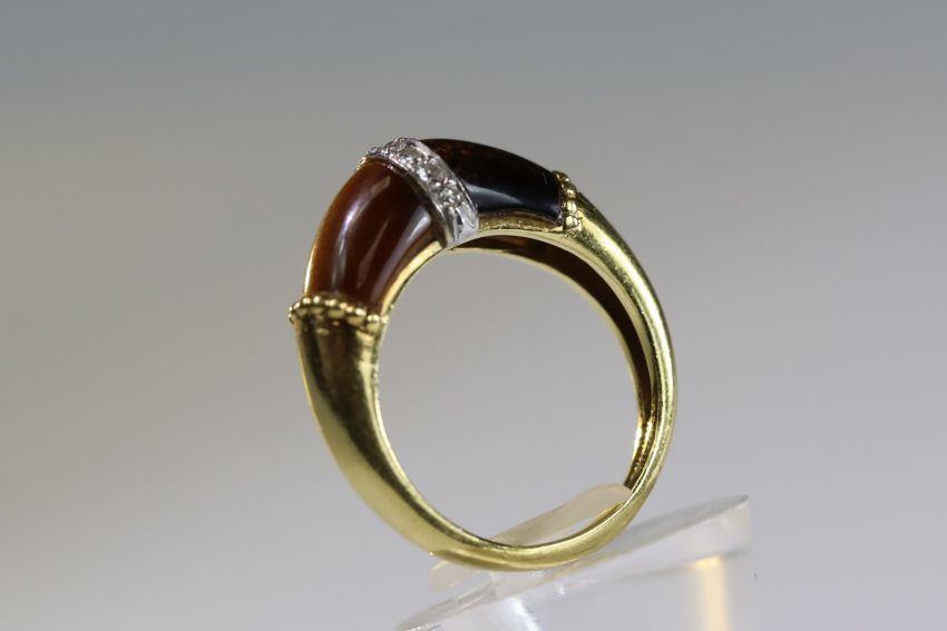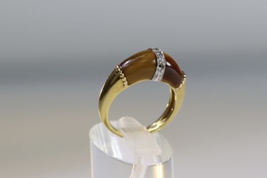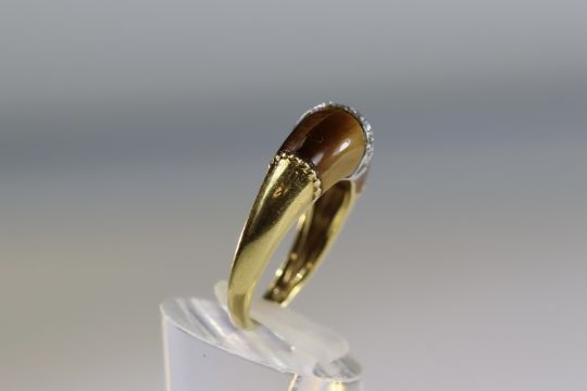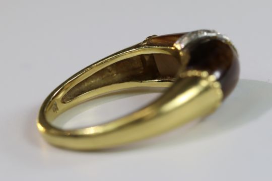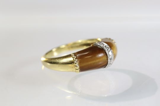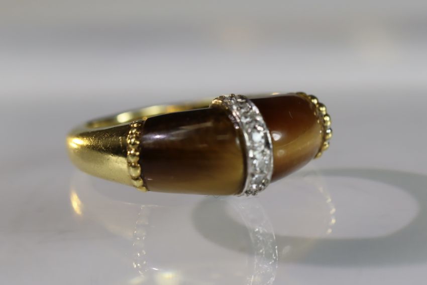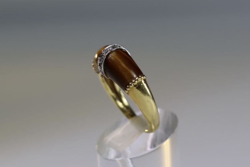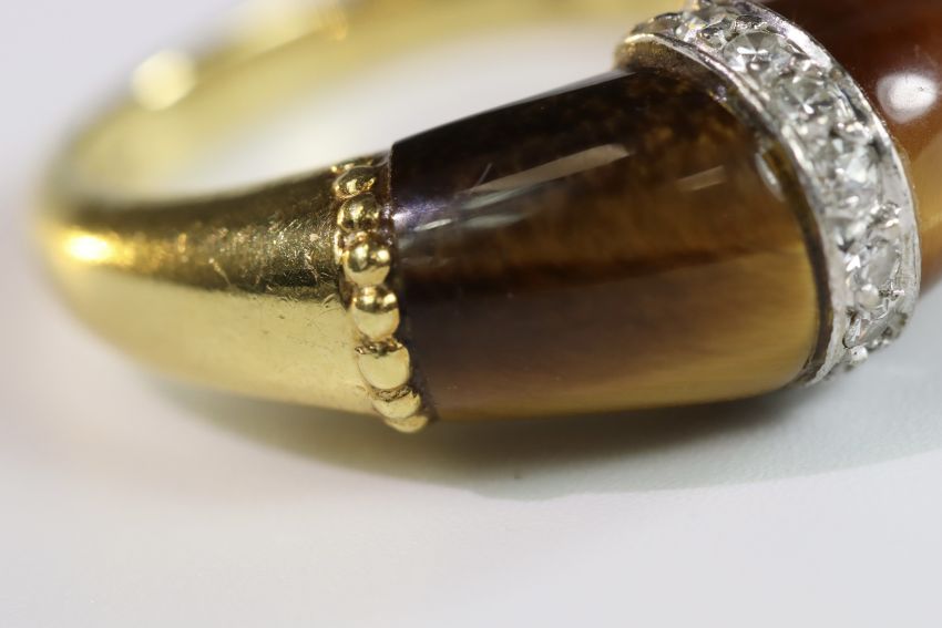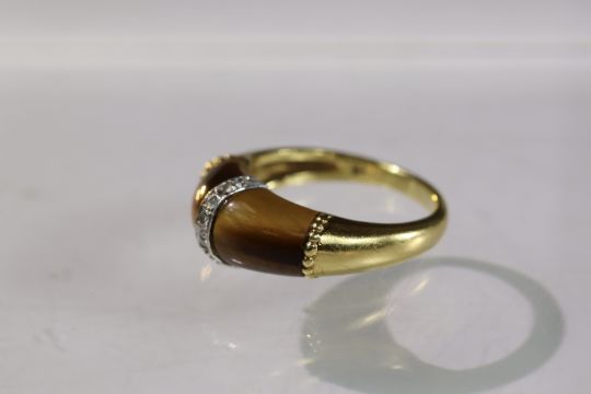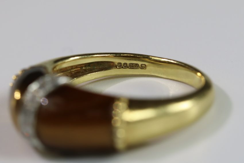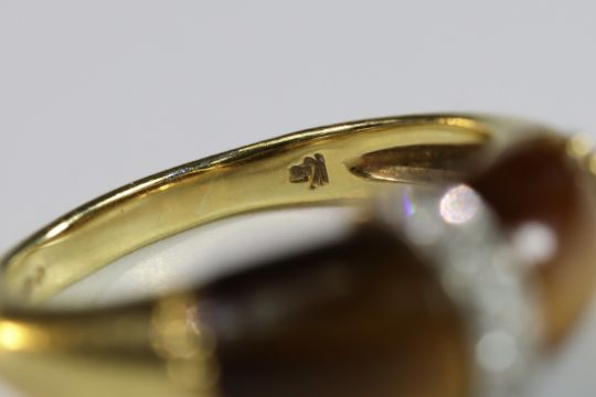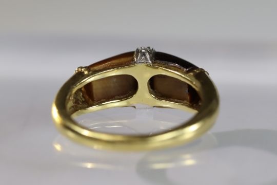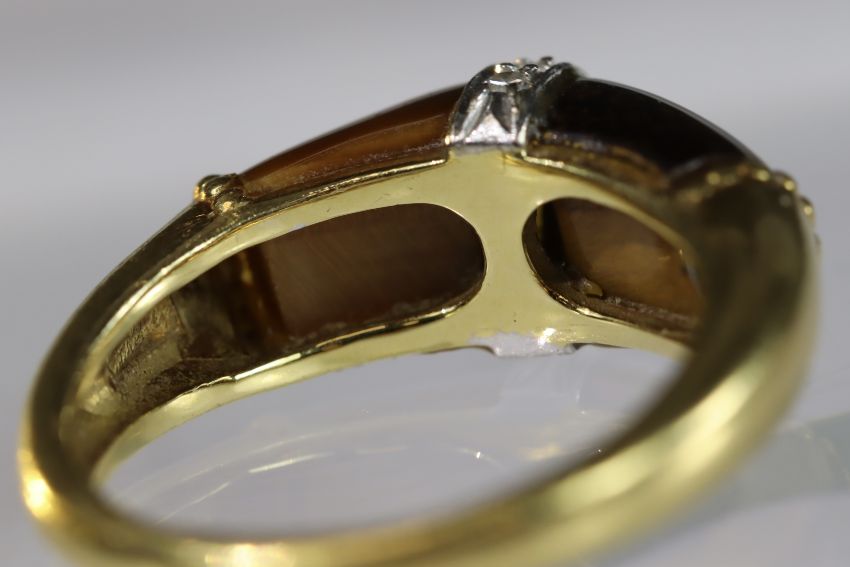 A Tiger's Eye, Diamond and Gold Ring, by Kutchinsky, signed in full, dated 1975