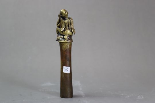A Bronze Seated Ascetic, 17th centurysensitively modelled, the bearded sage resting his head on his hand H:17.5cm, Weight:256g