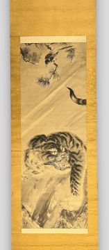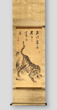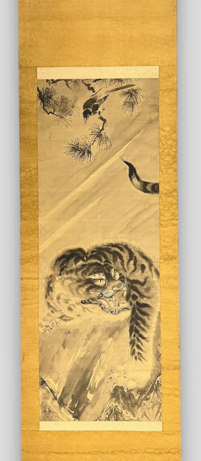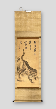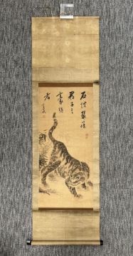 Antique A Pair of Japanese Hanging Scroll with Tigers. Two Japanese Hanging Scroll Depicting a Tiger L: 180cm - 192 cm