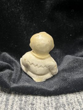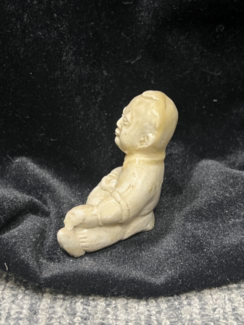 A Ding-type White-glazed Figure of a Child, Song/Jin dynasty modelled in the shape of a sitting little boy with short shirt holding a drumstick and a drum