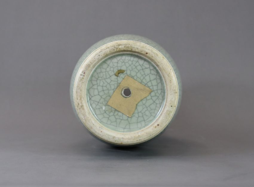 A Ge Type Ovoid Vase, 19th century, of tall form with waisted neck and galleried rim, the dark grey glaze on the exterior with dark overall crackle,