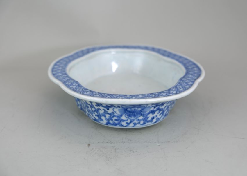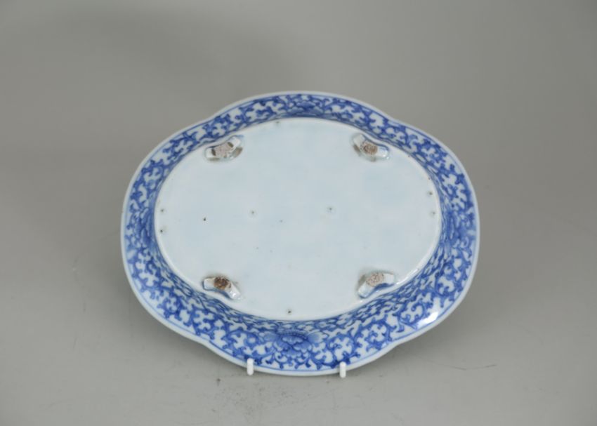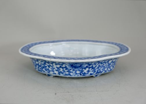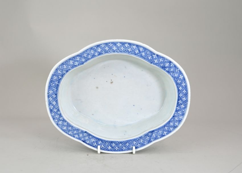 A Blue and White Oval Narcissus Tray, late Qing dynasty