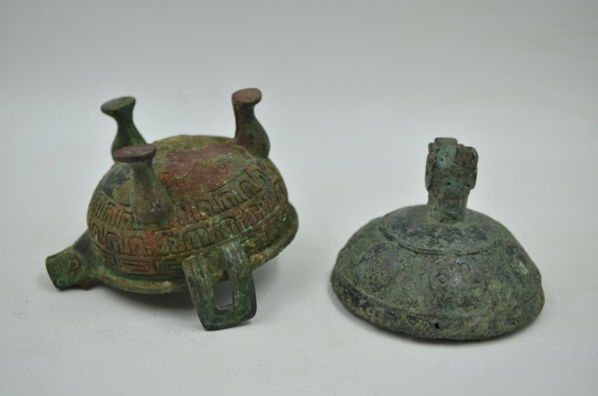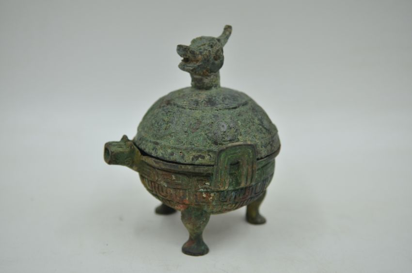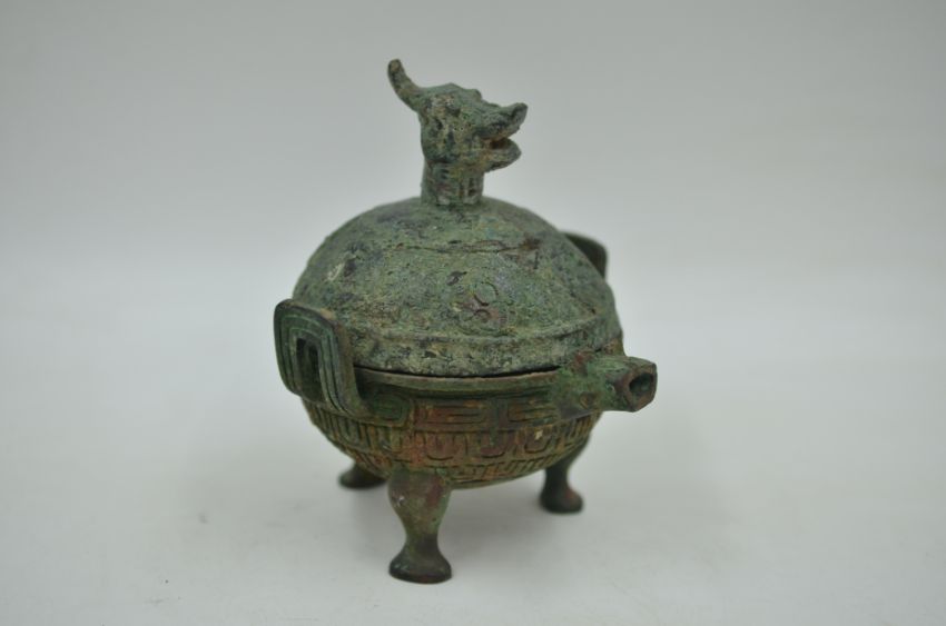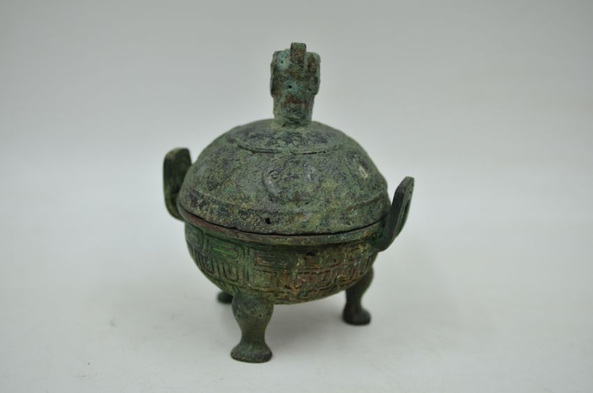 Description: 19-20世紀 青銅流鼎,帶蓋